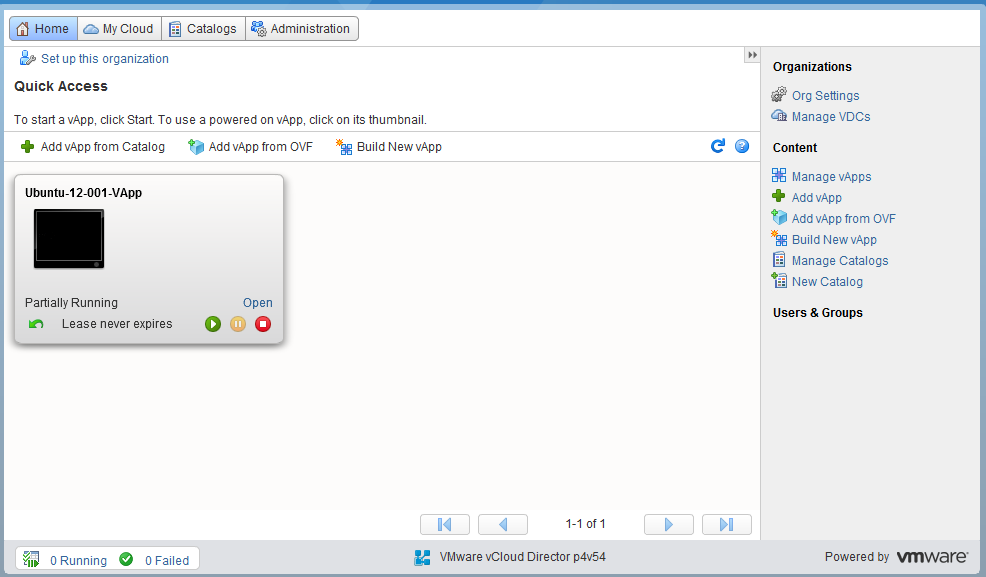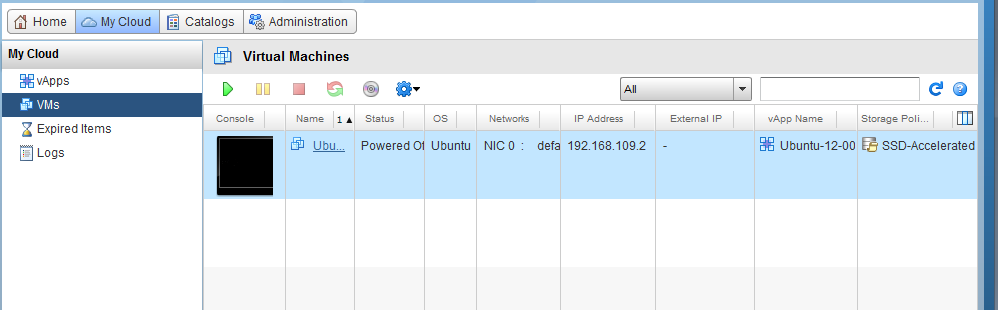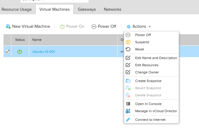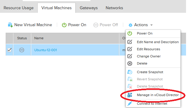 Then in the actions drop down box choose: “Manage in vCloud Director”